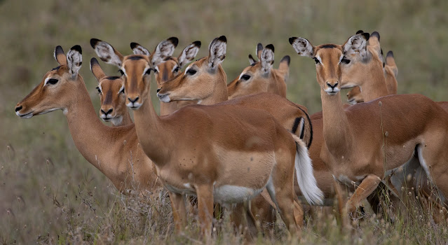 Unfortunately, I think we're in for flat, grey skies all afternoon but I rather liked the limited tones of this Grey-Capped Social Weaver sitting on the Acacia branches. The Vachellia drepanolobium or Whistling Thorn Acacia dominates the open bush land which covers 53% of the conservancy. Its nickname comes from the sound the wind makes blowing through the swollen nodes at the base of some spines.